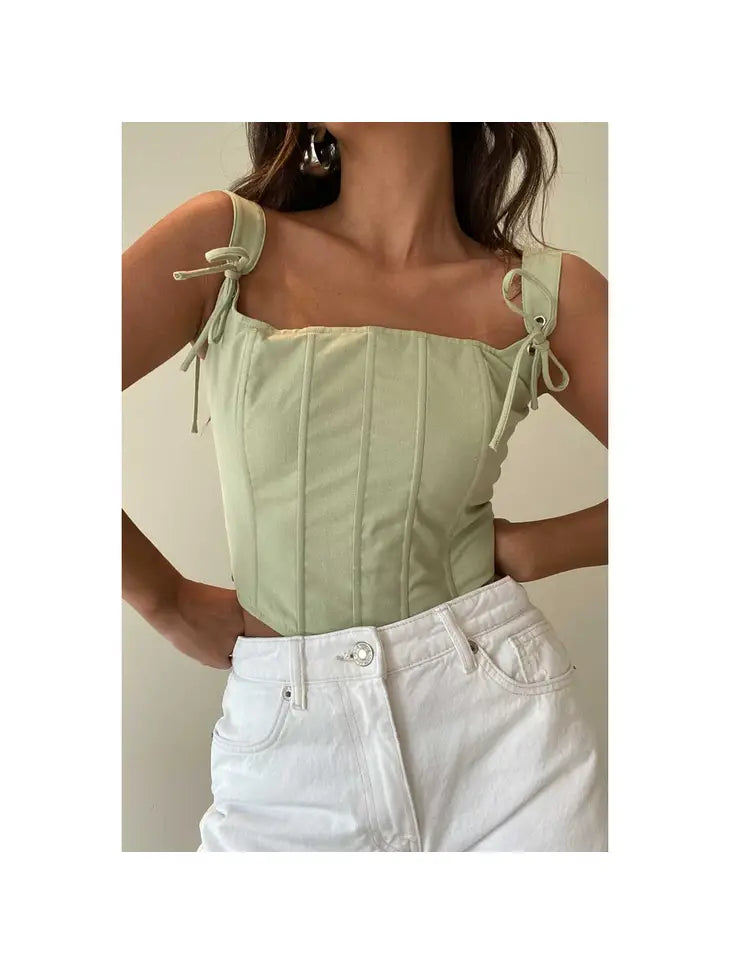 Make a statement in the Leslie Corset Top! This chic corset style top features cute tie shoulders and adjustable tie up strings, giving you maximum versatility for all occasions. Add a statement piece to your wardrobe and cinch it up with the back tie closure! Looking cute has never been easier!