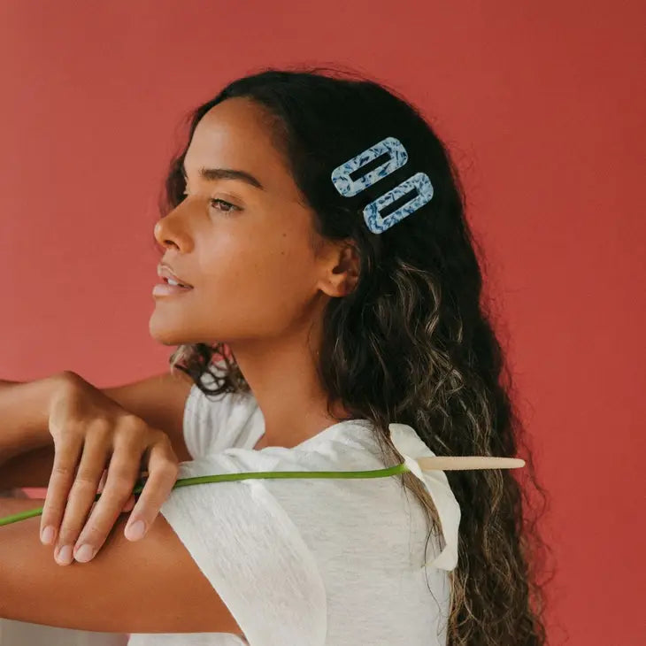 Color. navy & white Materials. cellulose acetate + metal clip Dim. 2.6''l x 1'' w Style. alligator style Hold. strong grip